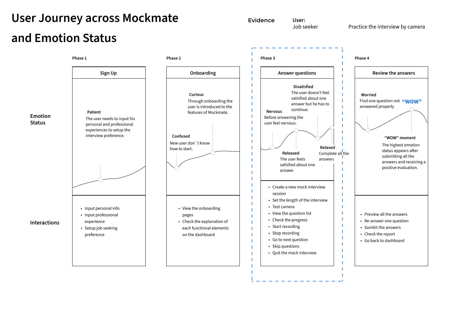 I created the competitor map with the existing solutions in the markets. Compared to other existing solutions, Mockmate gains handful of benefits from its AI application for assisting and educating individual for interviews. With the confidence that in the area of AI-assisted field, tools focusing on assisting and simulating interview are still underserved.